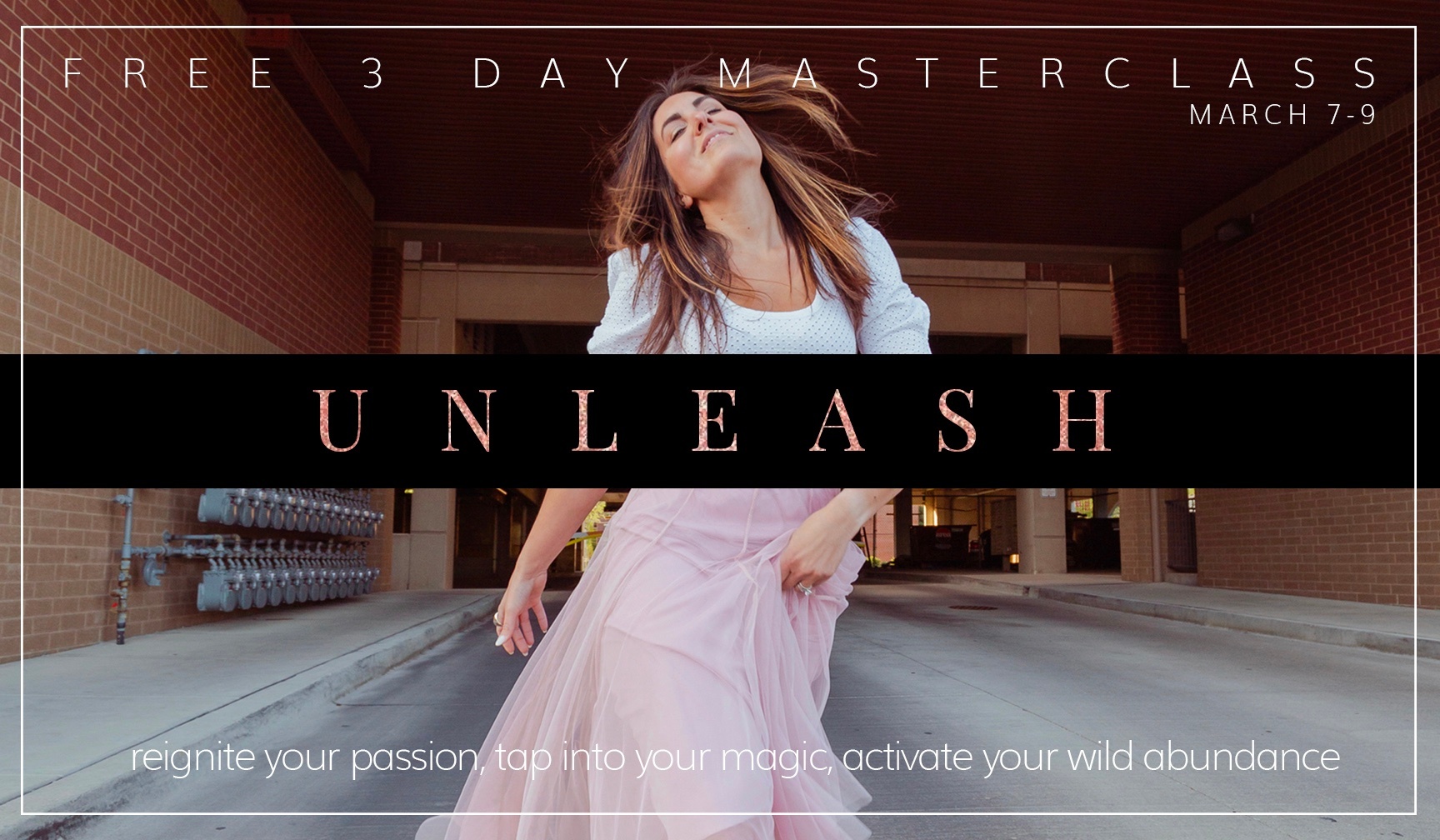 JOIN MY FREE 5 DAY MASTERCLASS WHERE WE'RE GOING TO UNLEARN THE BULLSHIT HOLDING YOU BACK, UNCOVER YOUR UNIQUE MAGIC, AND UNLEASH THE REAL YOU INTO YOUR LIFE AND BIZ, SO YOU CAN CREATE THE PASSION + PURPOSE + PROFITS YOU WERE MEANT FOR